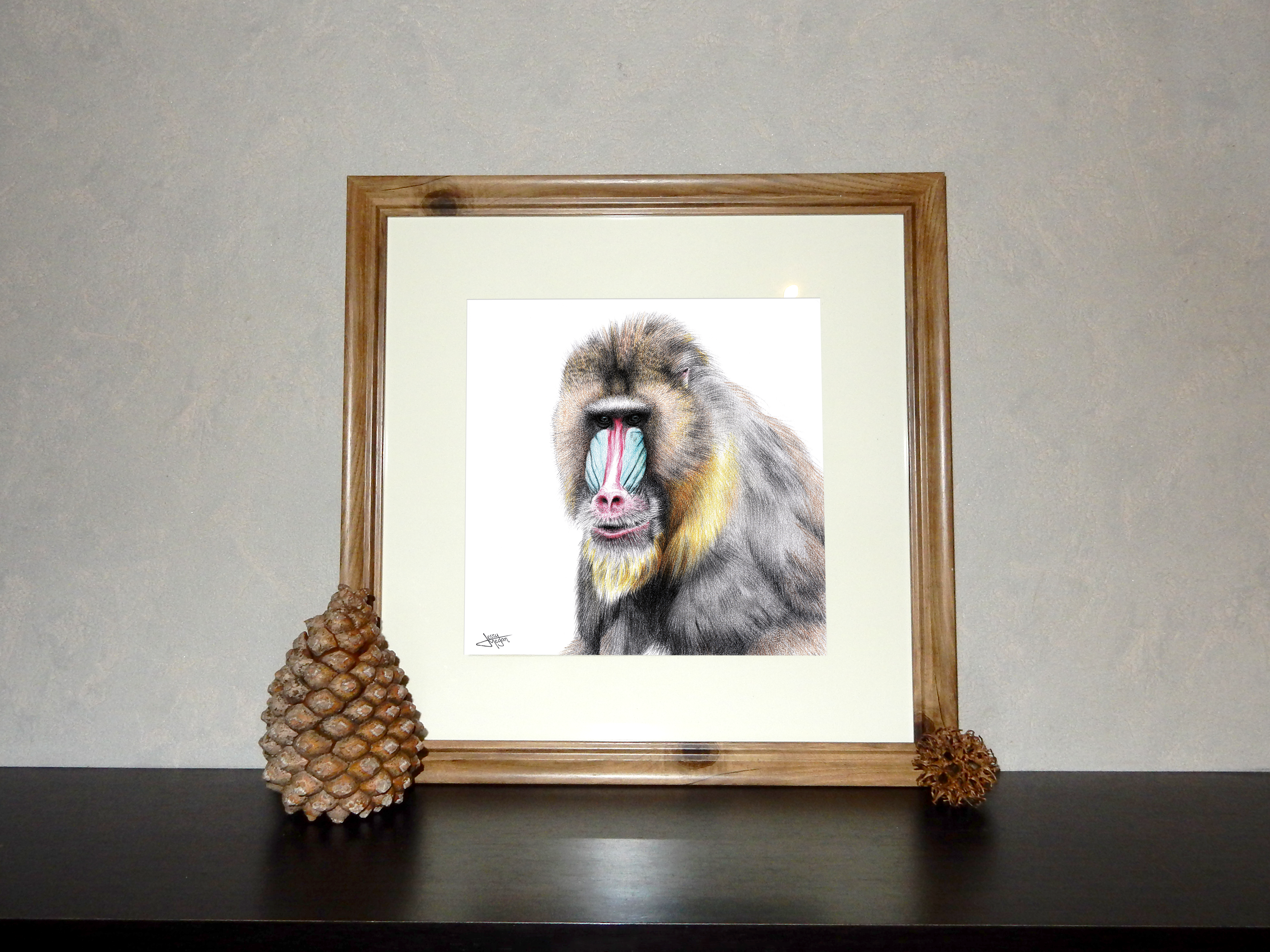 Le print mandrill fait partie d’une collection de prints animaliers à laquelle un portrait est ajouté régulièrement.